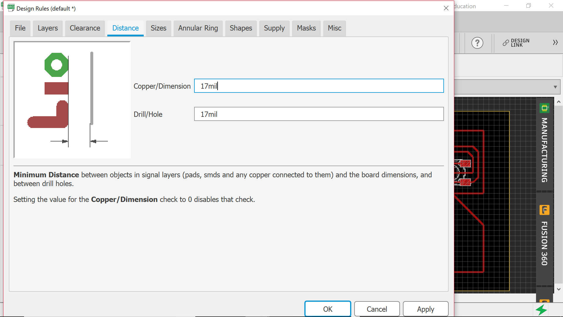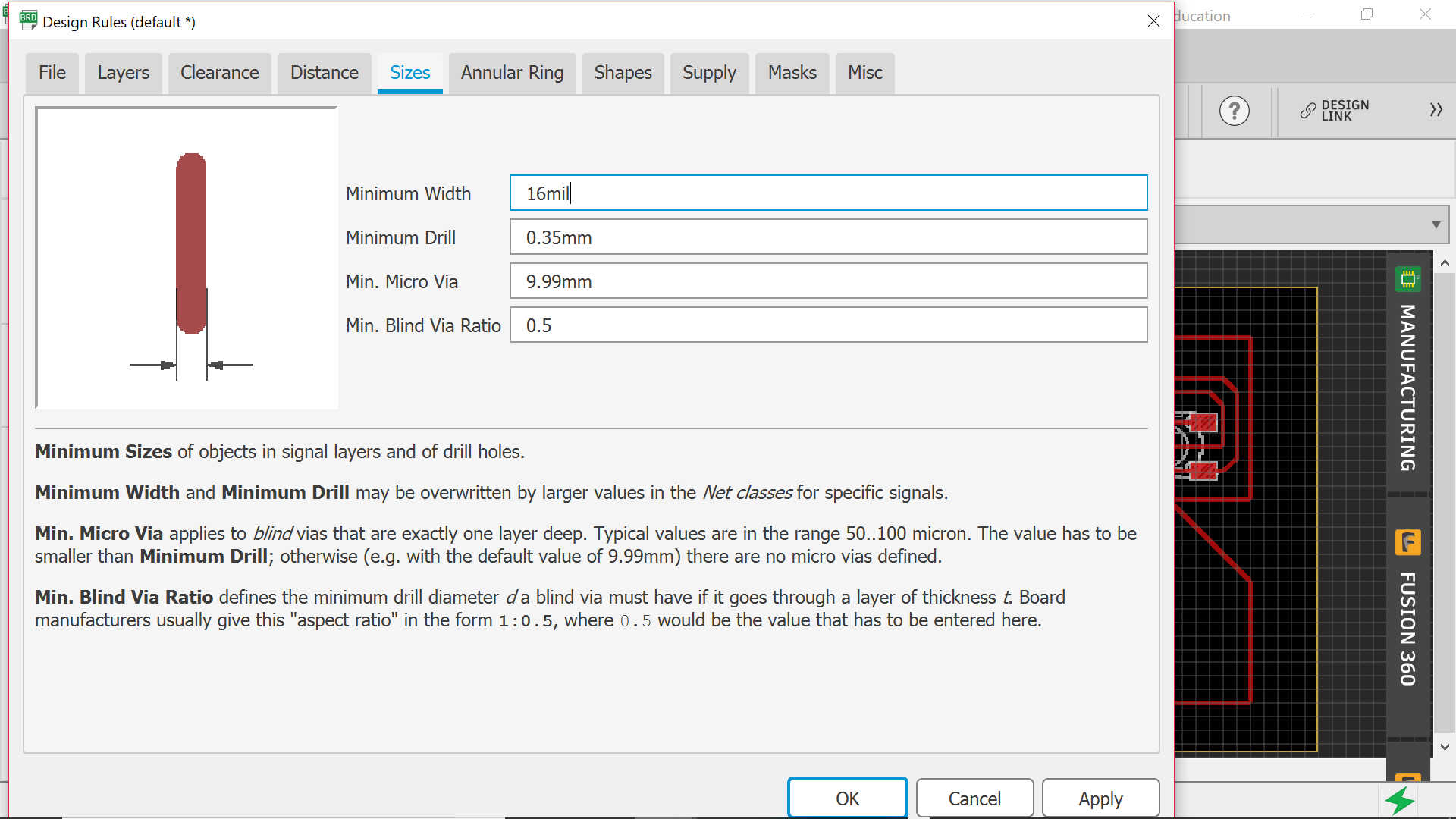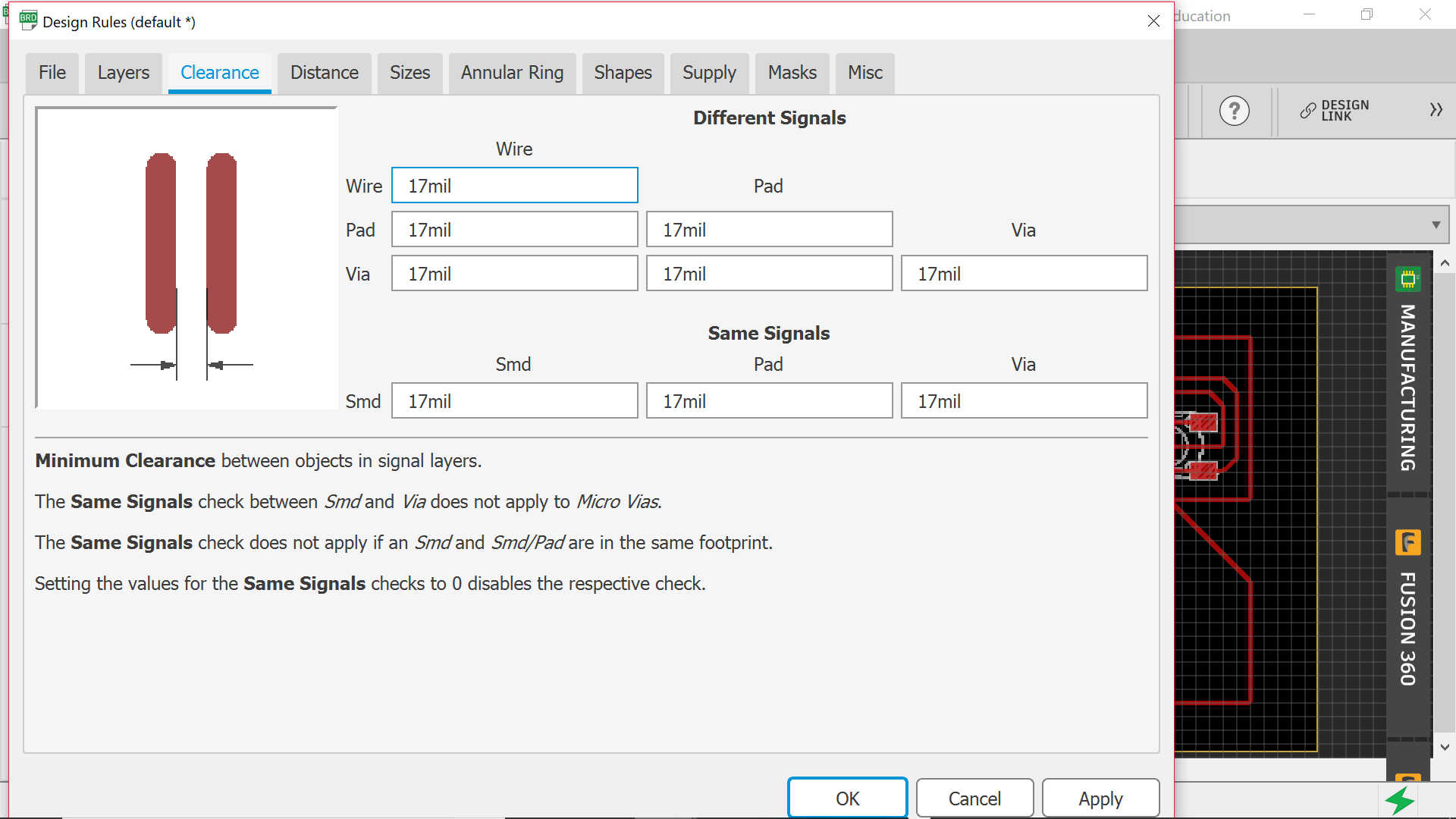 What happened here is that the routes I have previously drawn are not fitting between the components when I changed the design rules. Therefore, I had to place a 0Ω resistor in order to connect VCC together and GND together