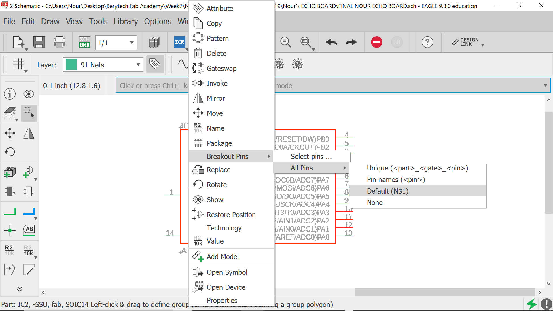 For each component, we need to add its breakout default pins and name them and accept that they get connected