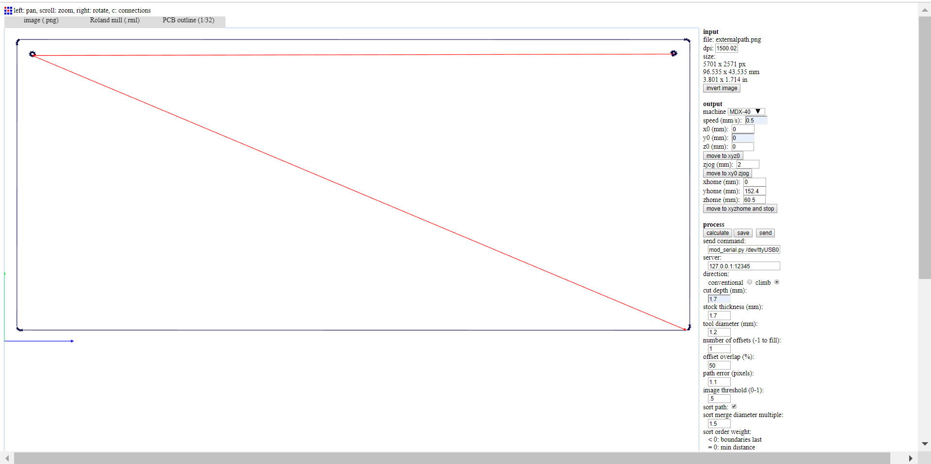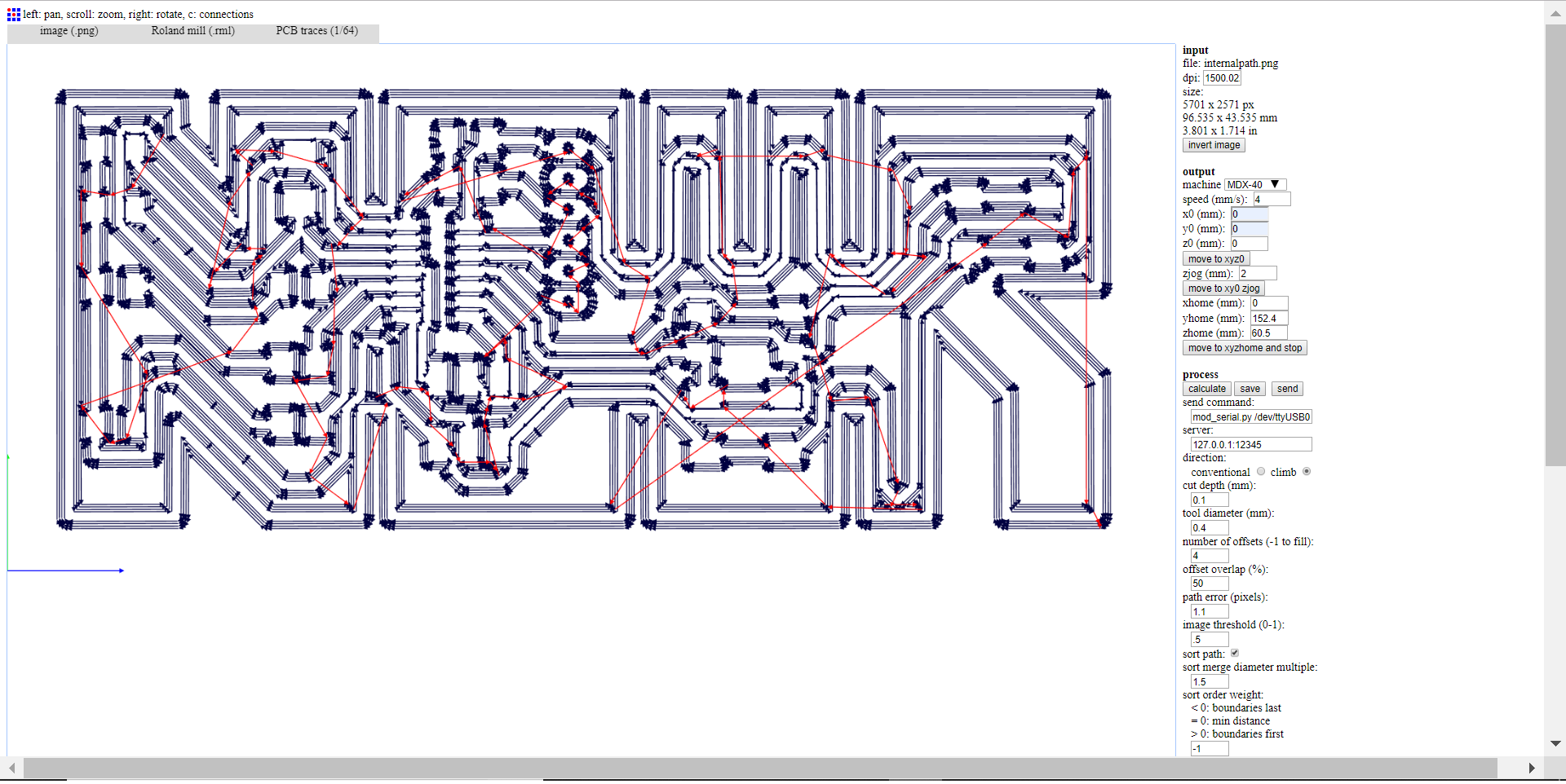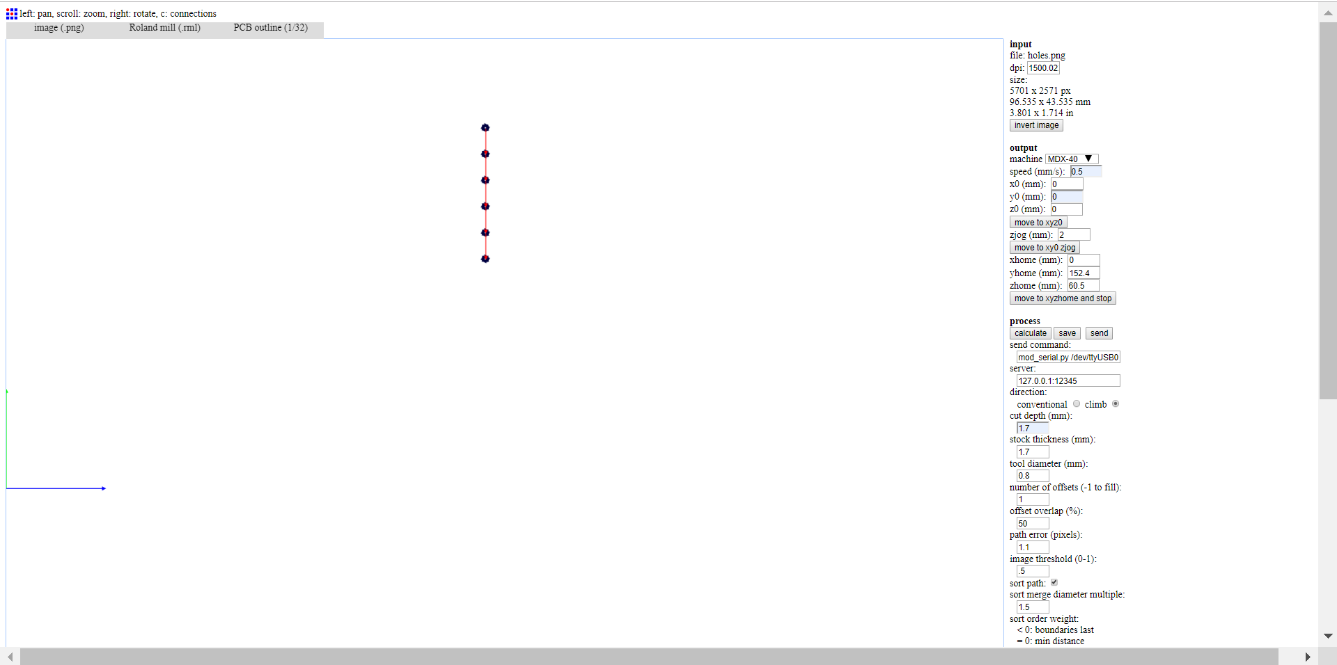 And for generating the G code, the drilling bit for the internal path that is going to be used is 0.4mm, for the holes 0.8mm and for the external path is 1.2mm