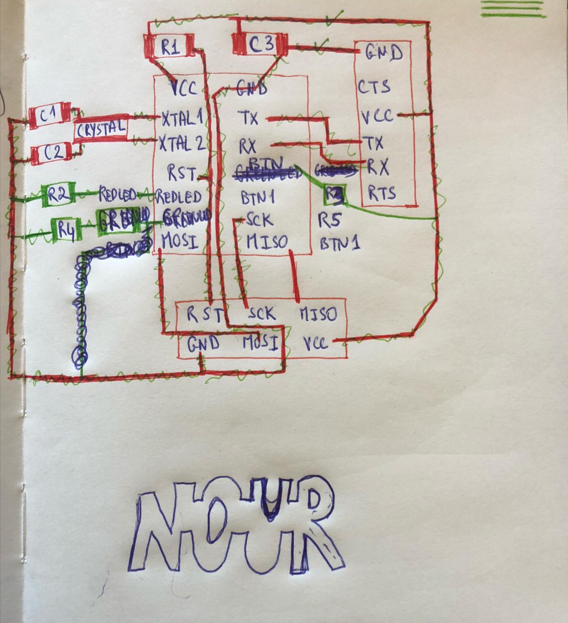 Before starting to draw on Eagle, I have tried to sketch the connections on my sketchbook so I can understand better the wiring and had the idea of having the board in the shape of my name. But I will start first by drawing the basic shape of the board and then modify it...
