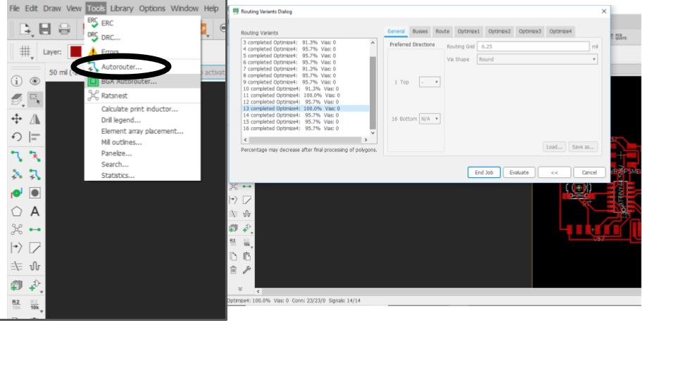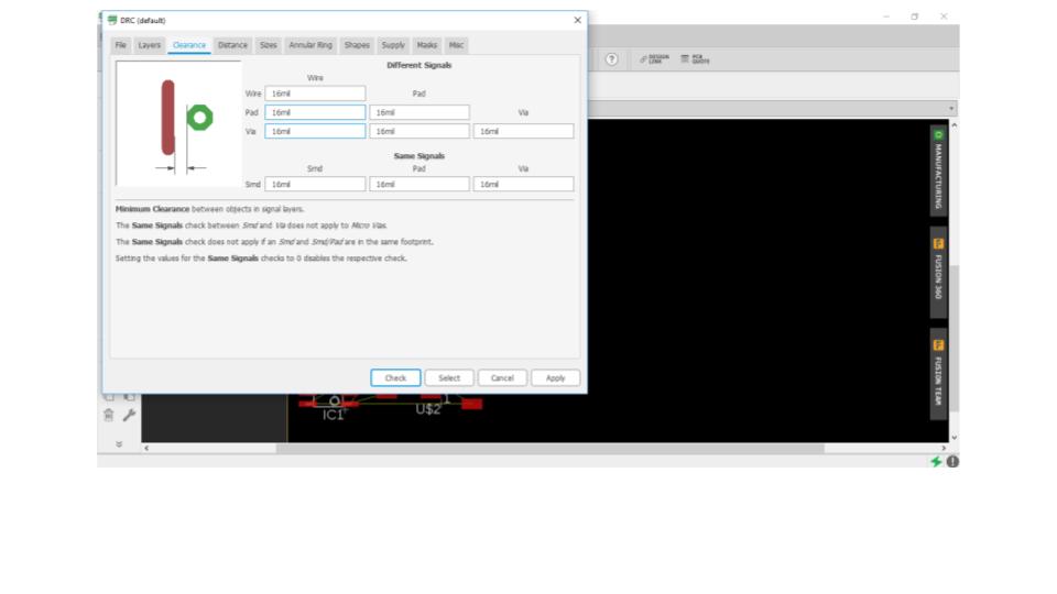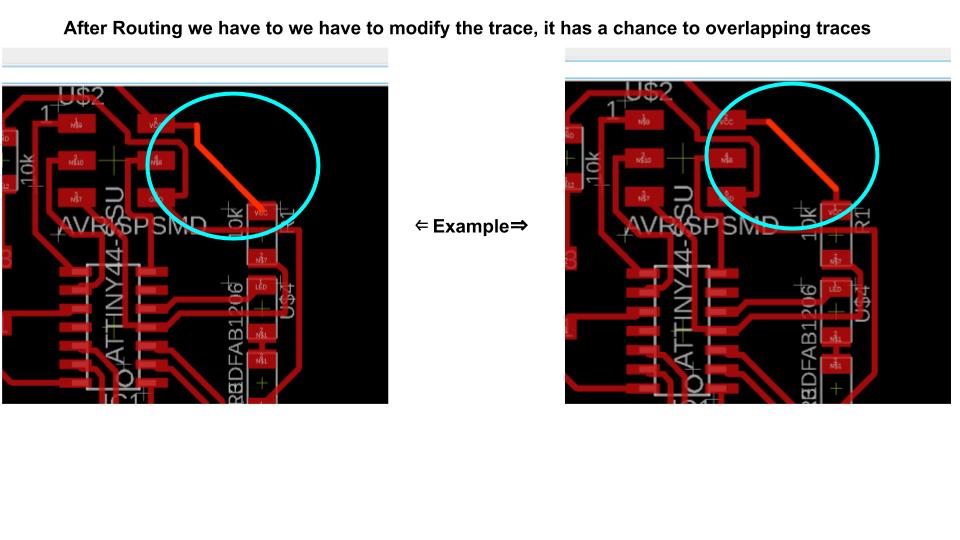- Again, I followed the example board provided to plan my traces and copied it as precisely as I could.