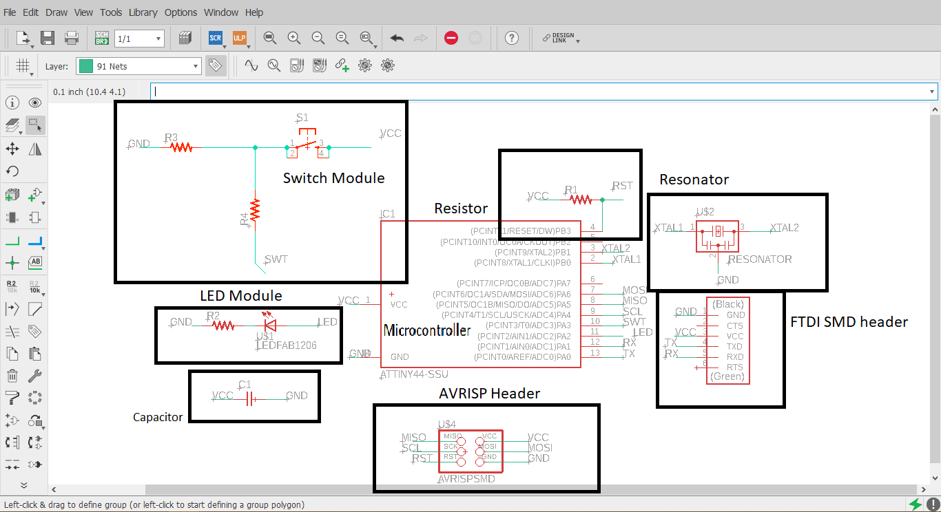 - I used the fab.lbr file provided to add common fab lab components to my Eagle library.