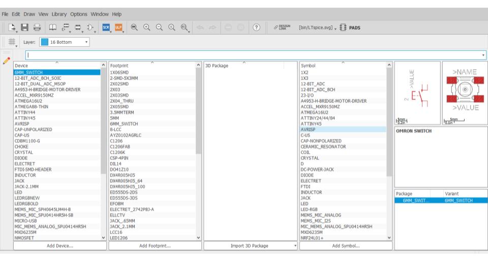- I created a board from the schematic by clicking the “Generate/switch to board” button.