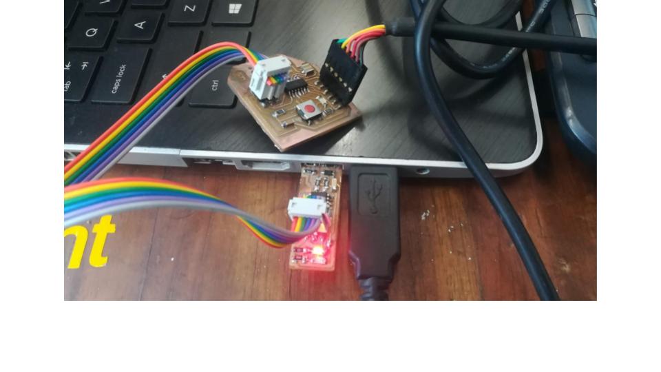 • The FabISP is an in-system programmer for AVR microcontrollers, designed for production within a FabLab. That is, it allows you to program the microcontrollers on other boards you make, using nothing but a USB cable and 6-pin IDC to 6-pin IDC cable. It’s based on the USBtiny and V-USB firmwares, which allow the ATtiny44 to perform USB communication in software. Programming can be done through avrdude.