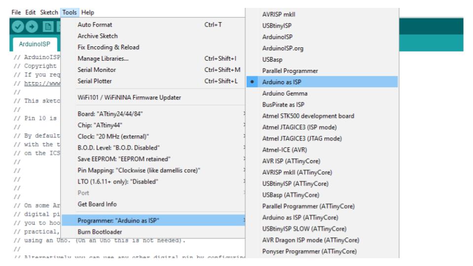 • The Arduino ISP is an In-System-Programmer that is used to program AVR microcontrollers. You can use the Arduino ISP to upload sketches directly on the AVR-based Arduino boards without the need of the bootloader. Otherwise you can use it to restore the bootloader.
