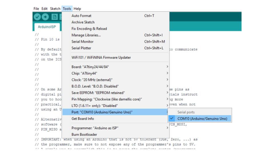 • Port : “COM10(Arduino/D\Genuino UNO)