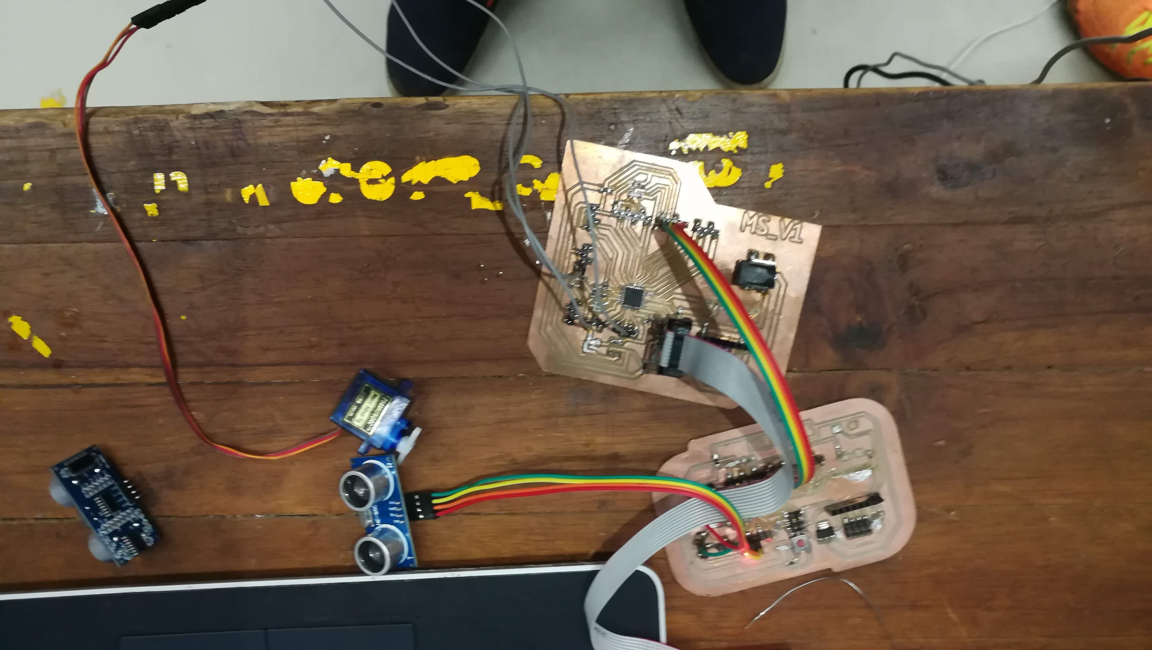- Then i decided to use sensor on end boards, For my master i am using ultrasonic and for slave i am using servo motor