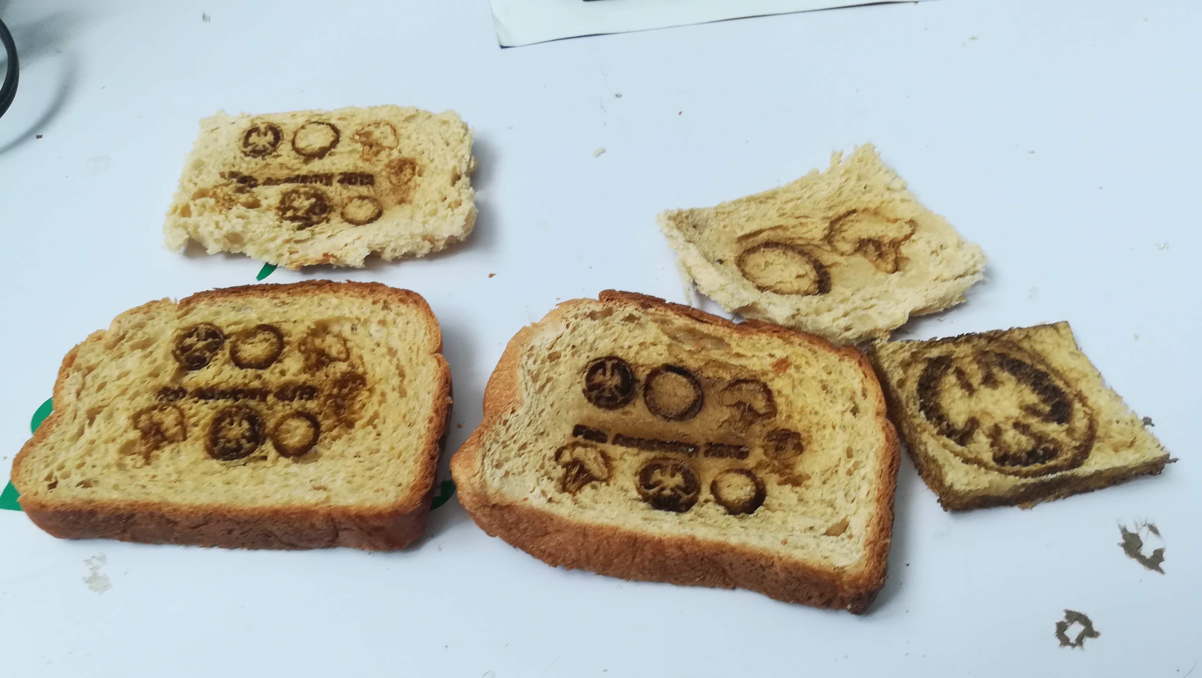- Bread are hollow so it burn 2-3 times then i put scanning in power 50 and speed 100 which gives me better result.