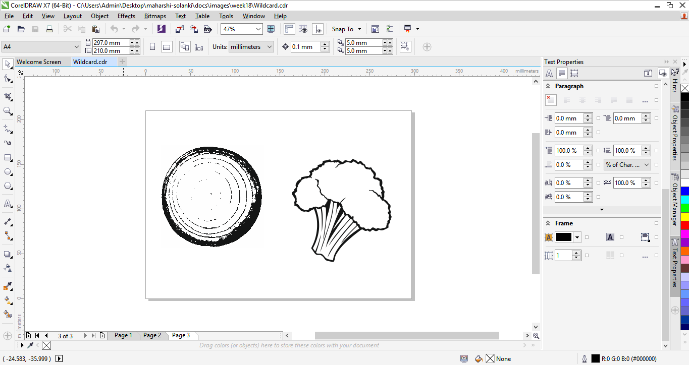 - I’m using corel draw for making design, for laser engraving we need Black and white images. For cartoon i got a vector file but for tomato and onion i use bitmap feature it will give me an black and white traces for engraving