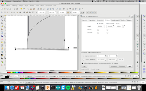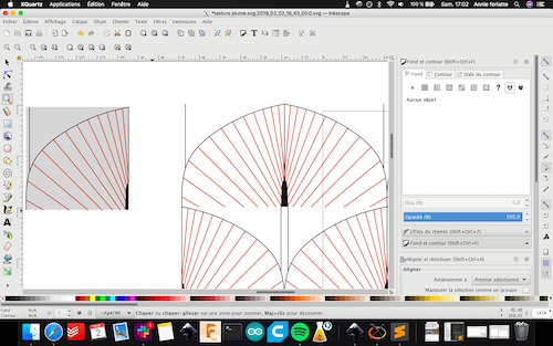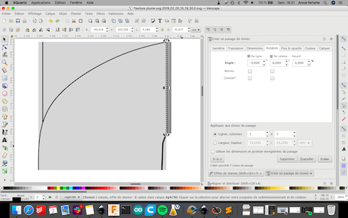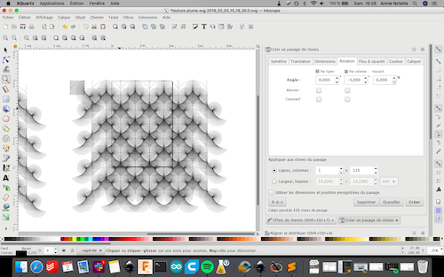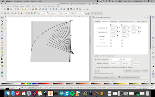 I start by making a easy pattern first and complexify it after. I was concentrated to generate the smaller feathers on the belly of a bird. To make it richer, the second texture I draw some lines to detach every piece of the feather. I try to generate a regular parametric line pattern. After few try and fails (somes fails were very nice), I found good parameters.