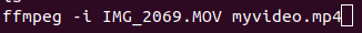 • trim time (-ss start time, -t duration): ffmpeg -i input_video -vcodec libx264 -b:v 1000k -an -ss 00:00:10 -t 00:00:10 output_video.mp4