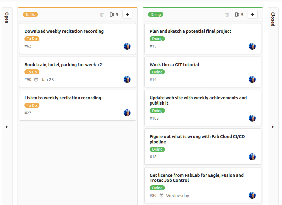While I was reading on GitLab, I discovered a tool to manage tasks and I put all tasks related to my capstone project in my GitLab (not the Fab Cloud one)