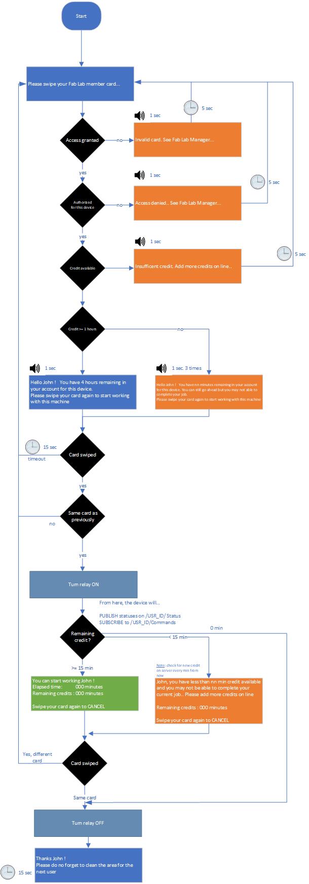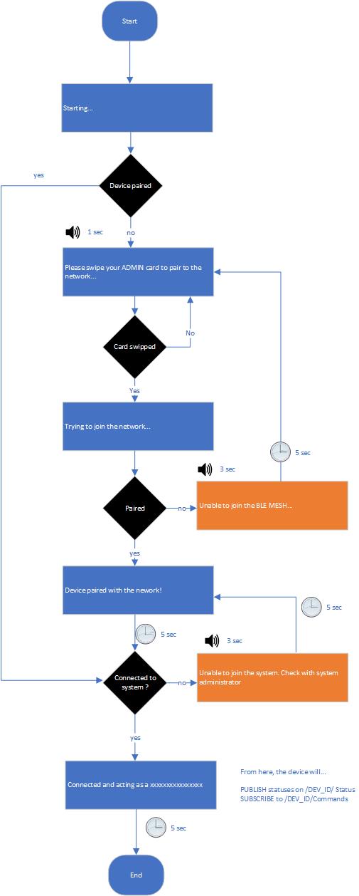 There are three UI flows: one for the device provisionning, one when the device is used as a metering device and a last one used when the device is used as a security guard