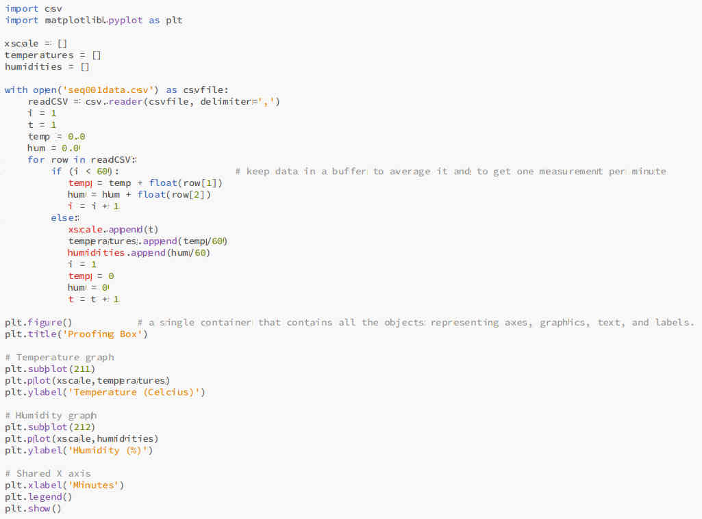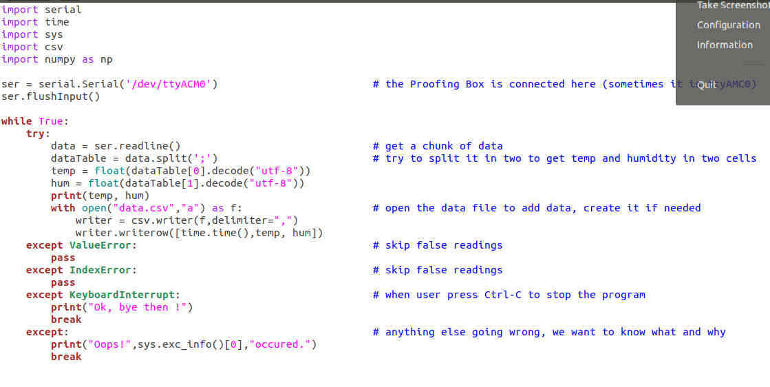 The idea is to get the data published by the "Proffing Box" and to store it in a file for further analysis. The code is written in Python