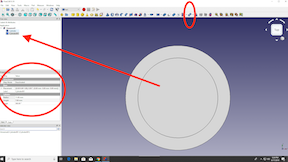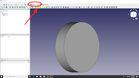 In FreeCad I make a new project, then open the Part screen and drop in a cylinder. I make it 7mm tall, 28 mm in diameter by changing the numbers in the sidebar.