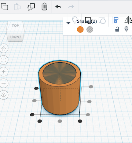 - Drag a “hole” or “negative” cylinder on the workplane and put it inside the first cylinder.