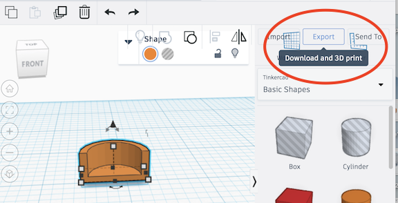 - Download your file as an .STL by using the Export button.