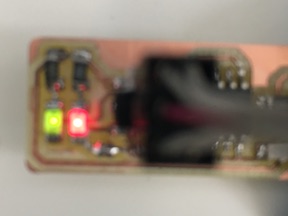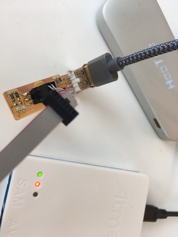 - Attach the 6 pin cable connected to the Atmel ICE. Red light and green light both came on.