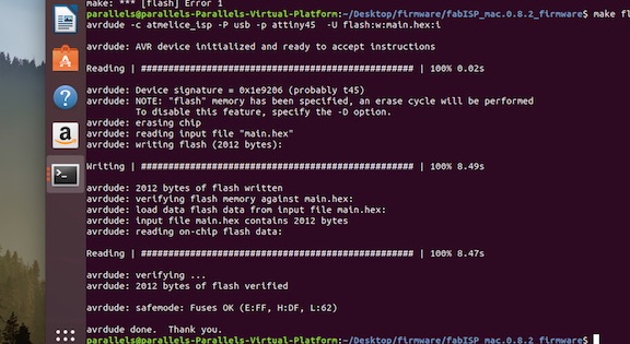Now that Parallels is working for me, I thought I’d take another stab at flashing my FABisps but neither of them worked.
