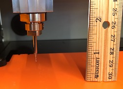It took a bit more figuring to zero on the Z axis. The key is dropping the end mill as close to the cutting surface as possible, being careful not to gouge it with the sharp end. Then loosen the endmill with the allen wrench and let it drop by itself to the surface. Now it is at true zero. Tighten it in the chuck with the allen wrench and lift it with the up arrow in VPanel.