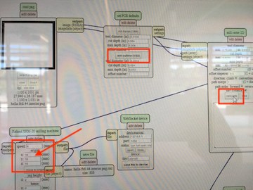 - load them into the mods. Check to make sure I have clicked on 1/32 for traces and 1/64 for outside. Check that the height says 0, not 10. Check that the outside cut will be 3 times. Create the rml file