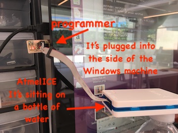 After trying the Windows-running-Ubuntu machine again with my Node Boss, he suggested that I build Neil’s hello-world board to try the Atmel ICE on. Did that. Here’s my board. I followed the steps as above: