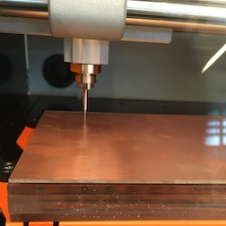 The Roland is not milling evenly across the board so the traces aren’t showing on the right side. We tested the level and found that the sacrificial layer is not level. It could be that the table isn’t level or the floor isn’t level, but it doesn’t seem logical that the table inside the mill isn’t level.