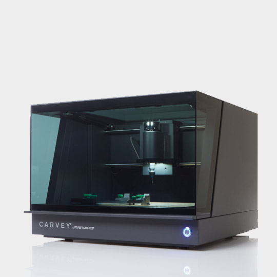 This week we are focusing on computer controlled machining. It may be possible to categorize laser cutters here, but we typically just talk about CNC routers as “machining”. We have a small CNC router that I have used with elementary age students. The Carvey Machine is a terrific entry-level CNC router that uses its own on-line app (Easel). Easel works like Tinkercad with drag-n-drop shapes. These kid-friendly products are made by Inventables. The Carvey fits on a table and has a plexiglass case around it to cut down on the noise. It’s great for projects like rubber stamps, wooden jewelry and (my favorite) fidget spinners.