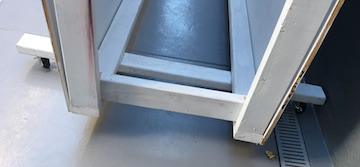 The casters are on a 4’ 2”x4” board. This was a lesson about how stable this big bus would be up here on our mountain where it is frequently windy. The team researched the casters and talked about cost vs. functionality.