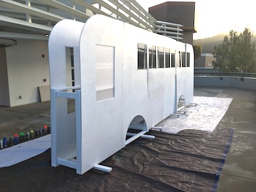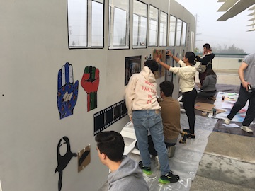 It’s a good thing that we have garage doors in our space so that we can get the bus outside for the students to graffiti it.