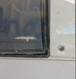 We ordered clear plexi for the windows but to save some money, we ordered a standard size. That meant that the plexi was the same height as the window – no overlap. The team drilled holes in the plexi and pilot holes in the bus panels. They used screws and a washer to keep the plexi from breaking.