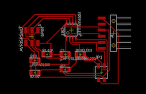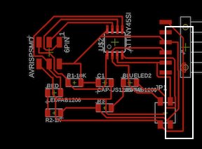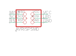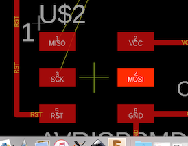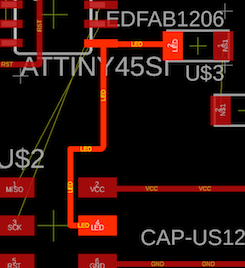 I change it to LED on the 6pin in the schematic and then go back to the board. Now I can connect it to MOSI on the ATtiny45 and the LED.