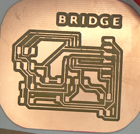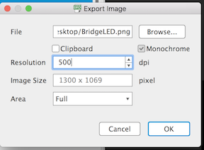 I opened the exported png file in Inkscape and reduced it to the correct size before exporting it for milling. While I was there, I made the letters in BRIDGE bigger and bolder. Then I saved the file at 1000 dpi for milling.
