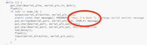 - “Node 1” should appear on your serial monitor and the LEDs should flash in order. After all the LEDs light up once in sequence, the board that corresponds to the number that is entered into the serial port lit up again. The message went around in a circle.