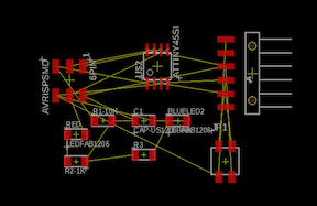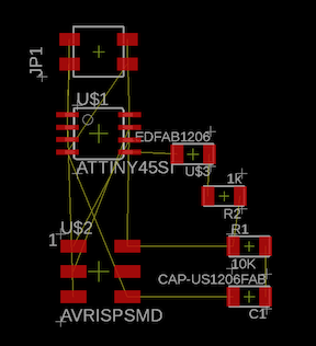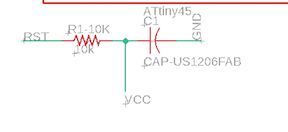 I made one correction from my earlier board by adding VCC between the connected capacitor, 10k resistor and RST.
