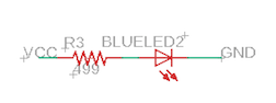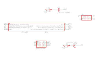 In this picture, you can see the connections between the resistors, capacitor and the LED. If they are located close together, routing the traces will be easier. The capacitor needs VCC on one side and GND on the other. It’s not picky about which is which.