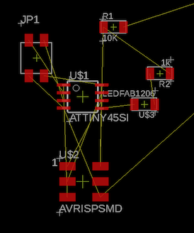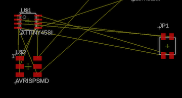 I started by copying my Network Bridge Project in Eagle so I didn’t have to rebuild the 4 pin, 6 pin and Attiny45 connections from scratch.