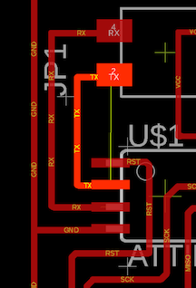 Sometimes you can change the order in which pins are designated on a component. For example, the 2x2 connector doesn’t care which pin is TX and which pin is RX. You can move them all around because the connector is just a conduit of information. Any of the 4 pins can be VCC, or whatever. You just have to adjust your cable. But that FTDI connector, although it looks like a conduit, it is not. That’s because it is a cable and the cable has a set circumstance. It always goes in order RTS, RX, TX, VCC, CTS and GND. You can tell what direction it goes in because the black wire is GND and the red wire is VCC. So don’t randomly try to re-order those connections in order to make your traces meet up neatly.