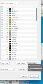 Time to download this board. Go to Layers and hide all of the layers, then un-hide the Top layer.