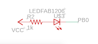 I got a red LED and initially called the connection PB0 because that is where it will be connected to the ATtiny45.
