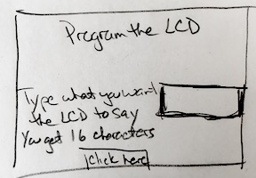 I need: 1. a box (frame) 2. instructions to the user (label) 3. a place for the user to type into (entry space) 4. a button for the user to click to push what’s in the entry space to the LCD