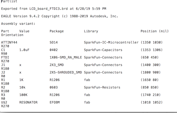 Now that I can communicate with new pcbs through Parallels, Blair said I should re-do this assignment without the Arduino. I thought I could use my hello.LCD board from Output Week through a GUI on my computer but that turned out not to be the case due to the structure of the board (it has no FTDI). I had to remake the LCD board with the FTDI for it to work with a GUI.