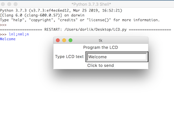 the python code takes that user input and pushes it to the LCD so that it looks like this: