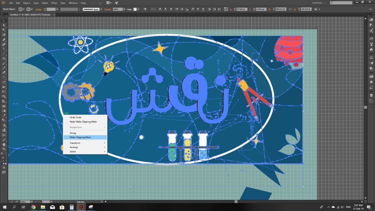 I want to make a sticker of the logo of the initiative I work on called Naqsh (an Arabic word that means Engraving). And I want to add the logo to a scientific themed background as this is the field of the initiative.