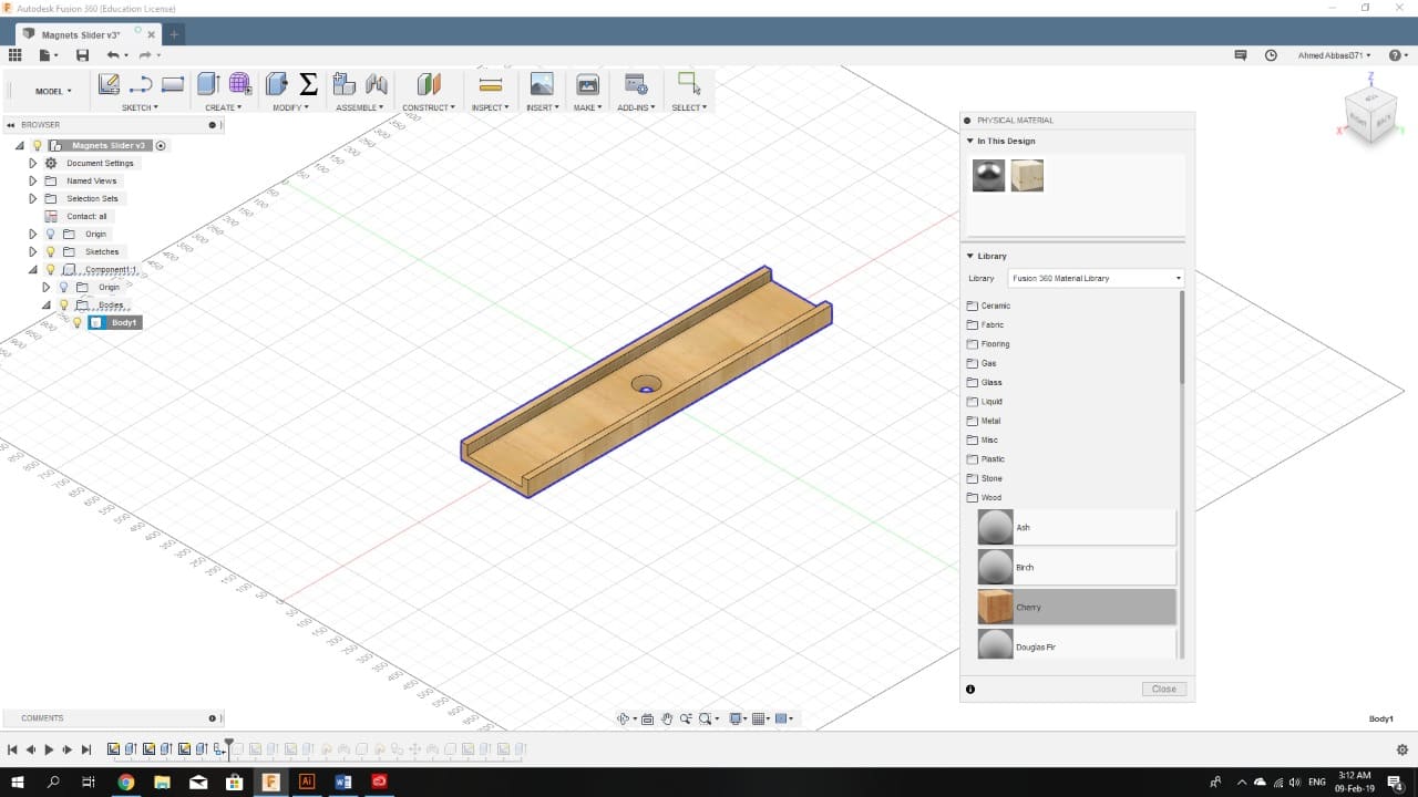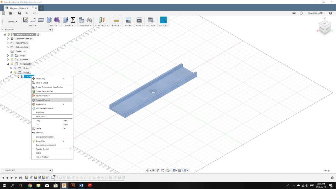 In order to select a material to be assigned for the body, right click on the desired body from the list on the left side of the window, then click Physical Material and select on from the options available.