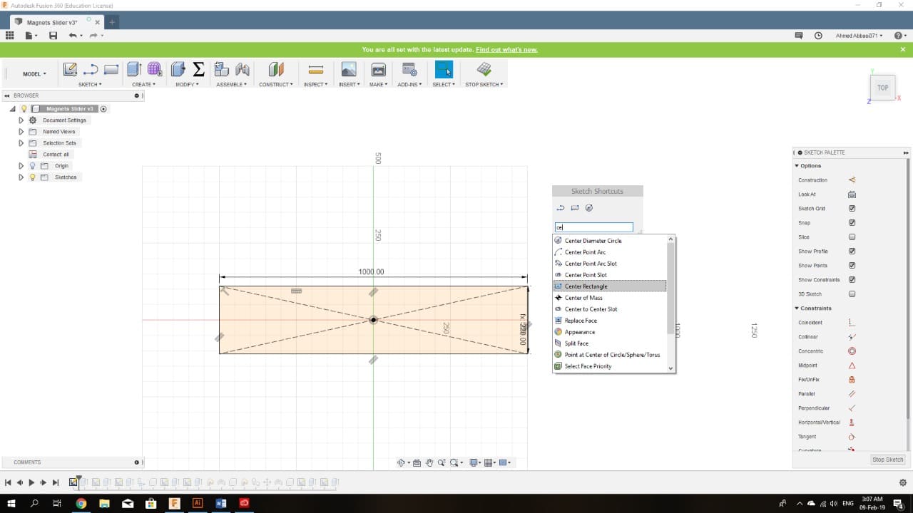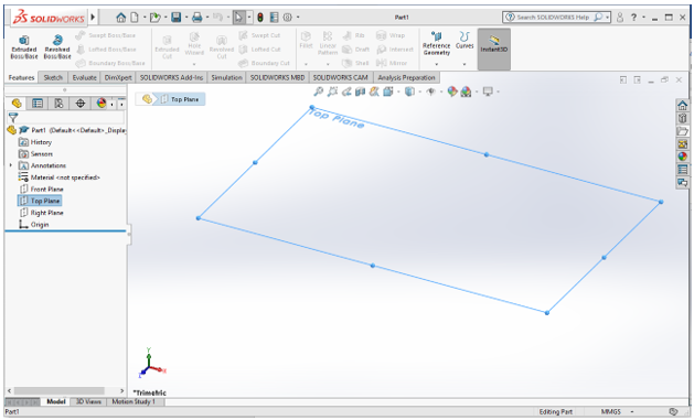 Now to the sketching, we select the plane and click on the sketching tool. Then start with our sketch.