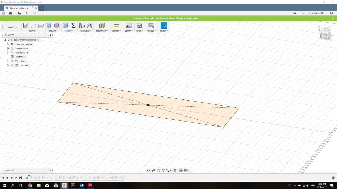 The interface of Fusion 360 is simple and user friendly. Refer to the picture below to see how the new window looks like. Notice the symbol Σ in the tool bar; this tool will be used for creating a parametric design.