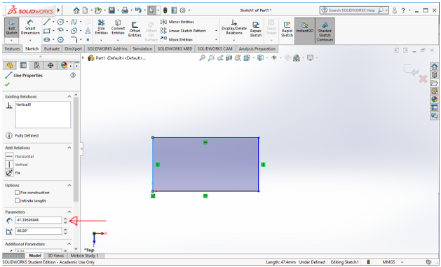 Back to the sketch… I can click on the line and select Auto Insert Dimension. Then click on the dimension again and a modify window will show. There, I can insert the parameter I previously defined and maybe with an equation.