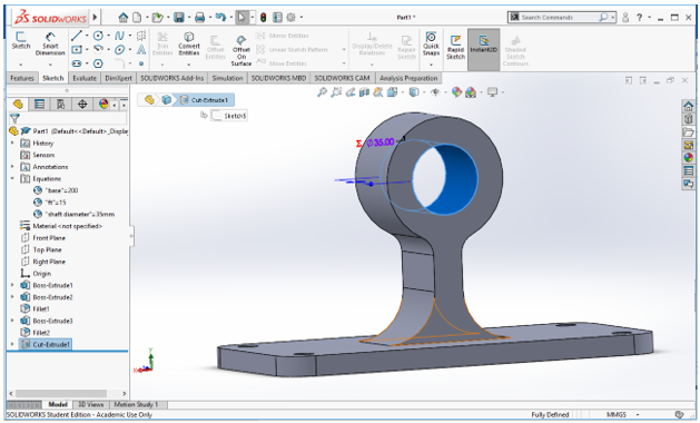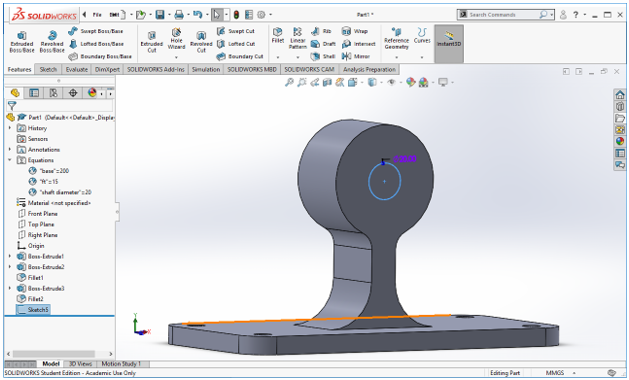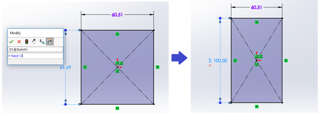 As you can see, I have already added a parameter named “base” with 200 mm dimensional value.