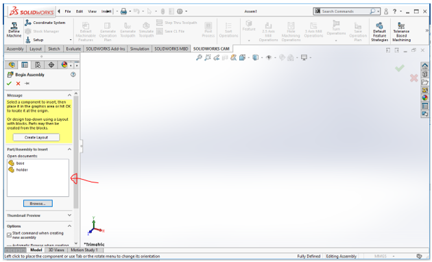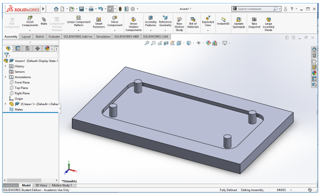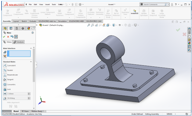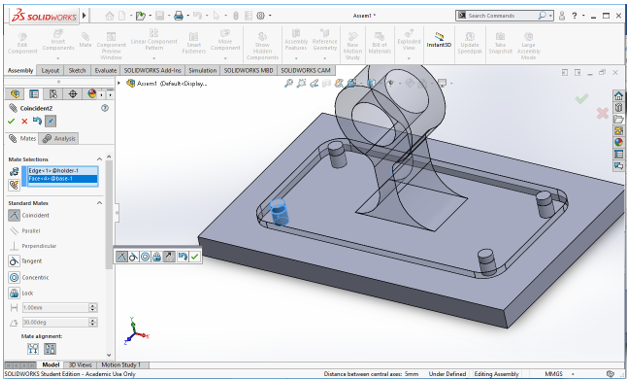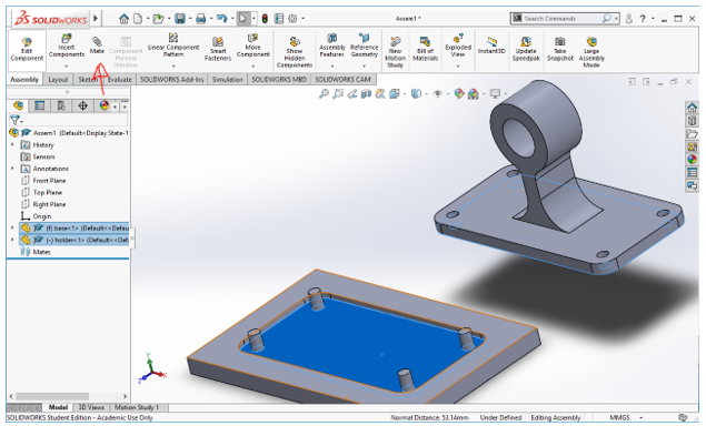 I selected the hole and the bolt in the base so they would be inserted in each other.